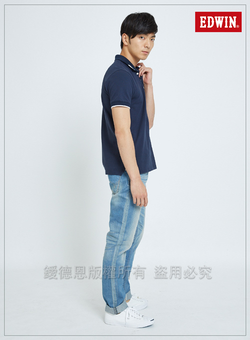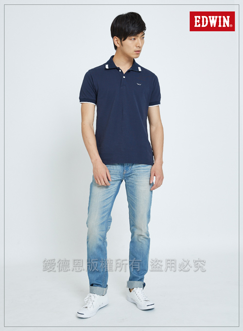 我要購買 EDWIN E-F W.F迷彩內裡 保暖中直筒牛仔褲-男款 中古藍 《7月APP結帳限定折扣》單件憑序號「19Jul50折50元」 [限一次] 任選2件組合價1500元。流行男裝與男鞋人氣店家EDW |  EDWIN 簡約小LOGO 長袖POLO衫-男款 麻灰 售價:690